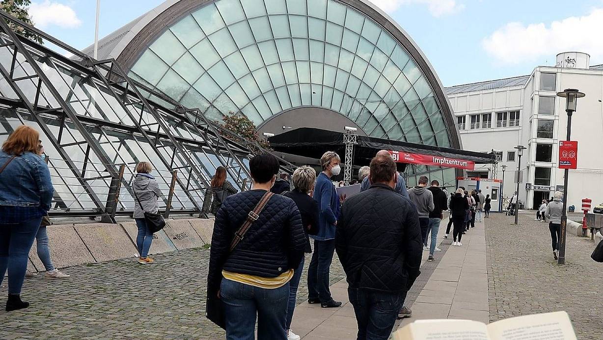 Auch am Wochenende: Erneut lange Schlangen am Bielefelder Impfzentrum