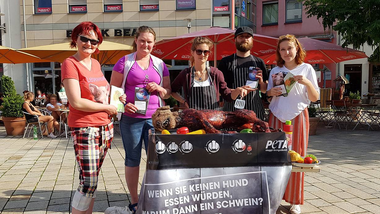 Typisch PETA: Aktivisten "grillen" Hund in Bielefelder Fußgängerzone