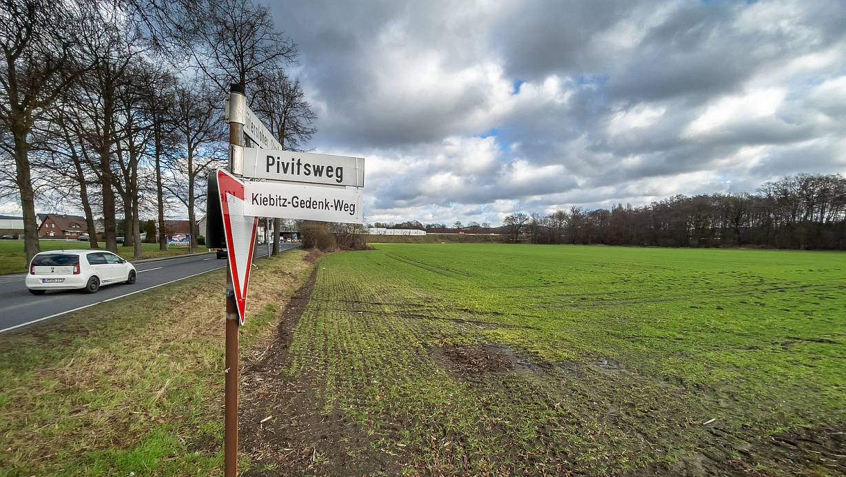 Der Naturschutzbeirat Bielefeld und der Bund für Umwelt und Naturschutz haben sich gegen die Versiegelung der Ackerflächen im Landschaftsschutzgebiet ausgesprochen. Der Pivitsweg wurde als Zeichen des Protests von Ausbaugegner in Kiebitz-Gedenk-Weg umbenannt. | © Andreas Zobe