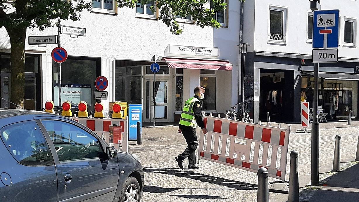 Gesperrt: Nur Anlieger, Anlieferer und Parkhauskunden darf Sicherheitsmann Danilo Cifric auf der Ritterstraße durchlassen. Doch viele muss er abweisen. | © NW