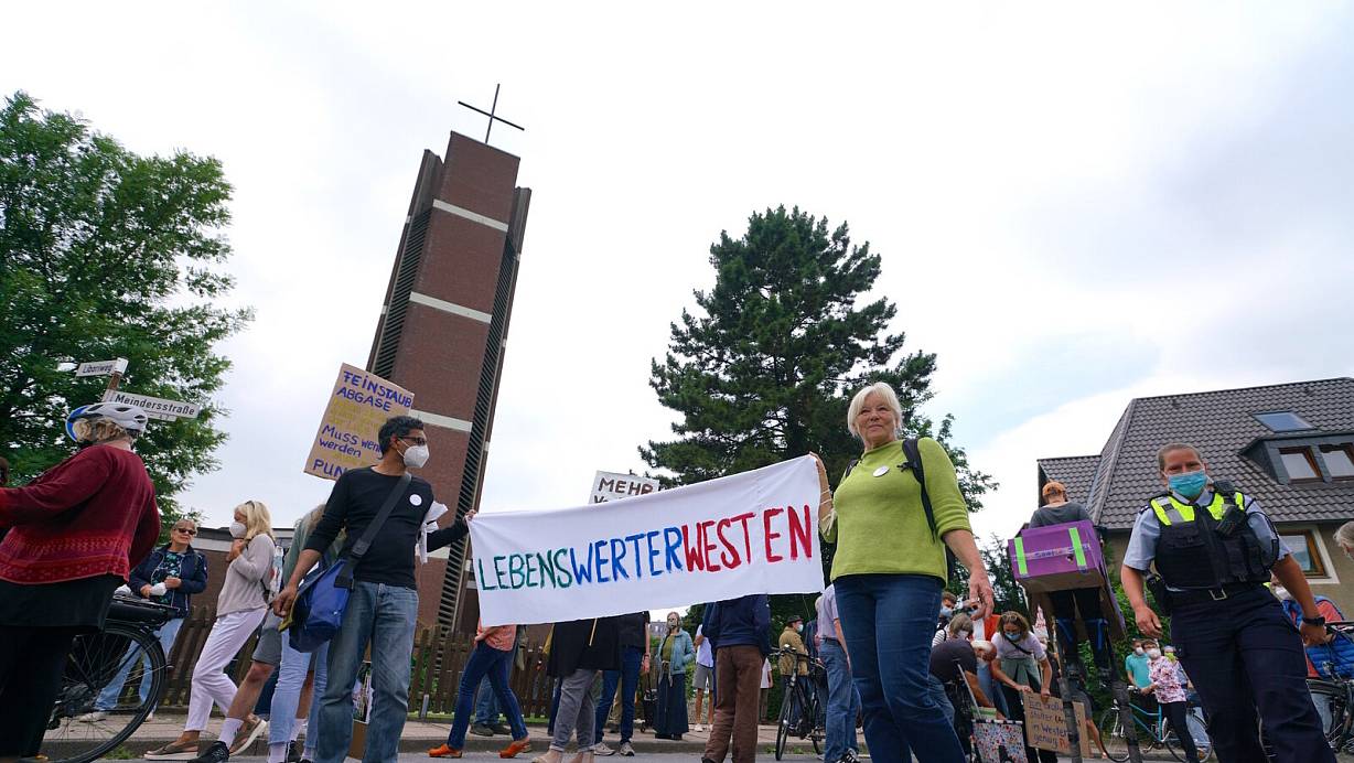 150 Anwohner und Nachbarn des Kirchen-Areals ziehen durch die Stadt und fordern ein Mitspracherecht bei der Verkehrsplanung in ihrem Viertel.