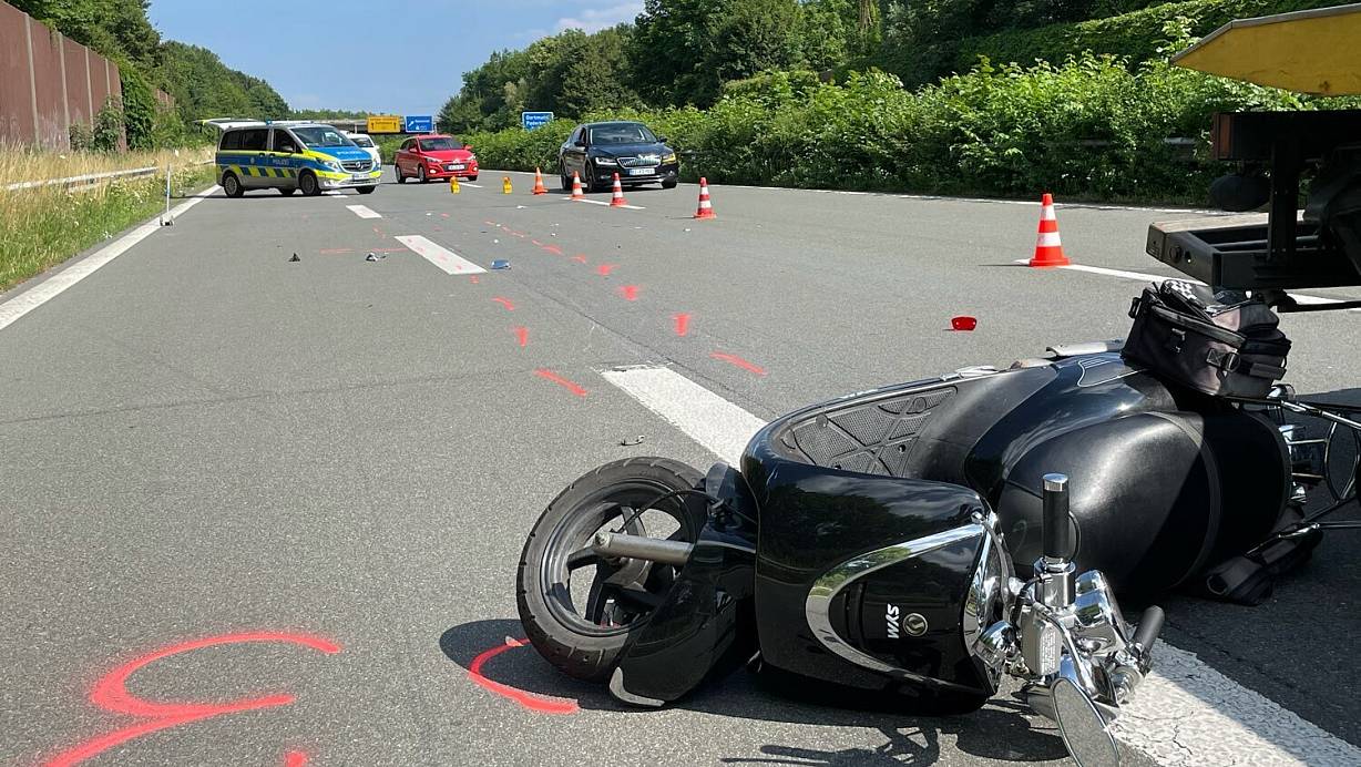 Auf dem Beschleunigungsstreifen auf der Lageschen Straße begegnen sich ein Roller und ein VW Golf. Beim gemeinsamen Fahrbahn-Wechsel kommen sie sich zu nahe.