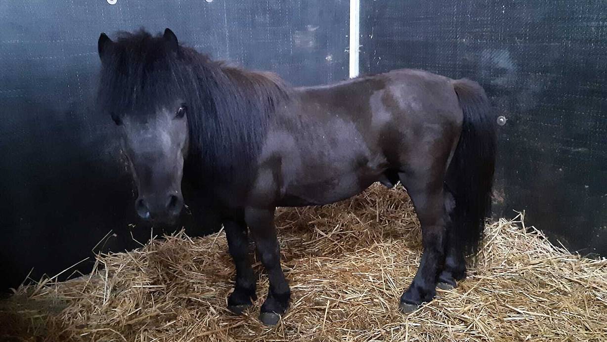 Das Tierheim sucht die Besitzer eines schwarzen Shetlandponys. Der kleine Hengst ist nicht sehr gepflegt und wenig zutraulich.
