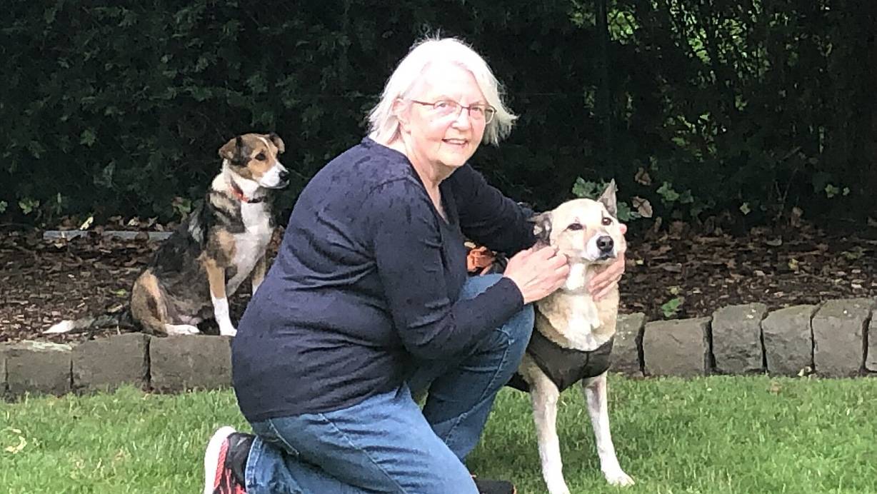 Mura passt auf, Ulla Müller knuddelt Maxim, der sich hinter seiner Hecke hervorgewagt hat. Und die Fotografin im Auge behält. | © Silke Kröger