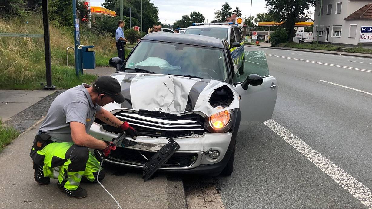 Weil der Fahrer eines VW-Transporters einen verboten U-Turn macht, kommt es zu einem Zusammenstoß mit einem Mini. Zwei Personen werden verletzt und müssen ins Krankenhaus.