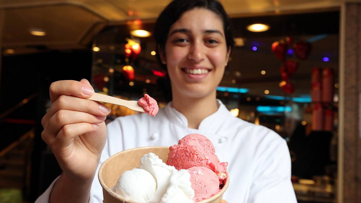 Bei Knigge sind die Eislöffel jetzt aus Holz. Auszubildende Sabrina Melo Klassen zeigt auch die neuen Becher - ebenfalls umweltfreundlich. | © Wolfgang Rudolf