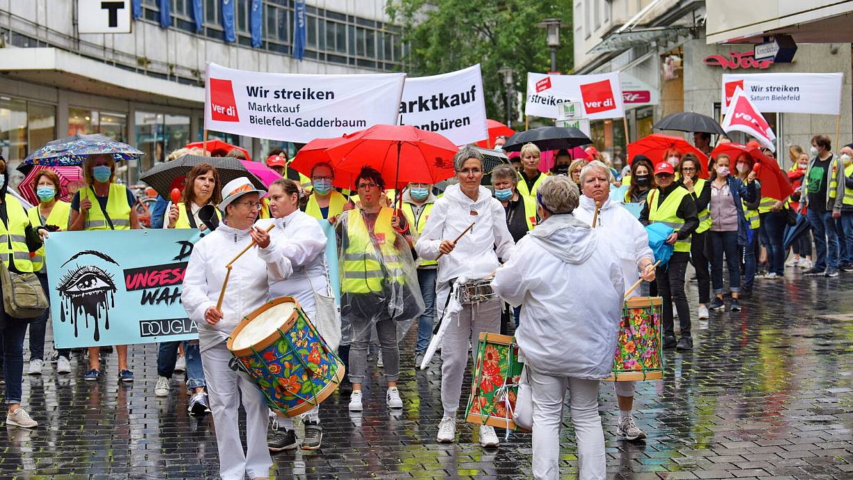 Warnstreik im Einzelhandel: Trommeln für höhere Löhne