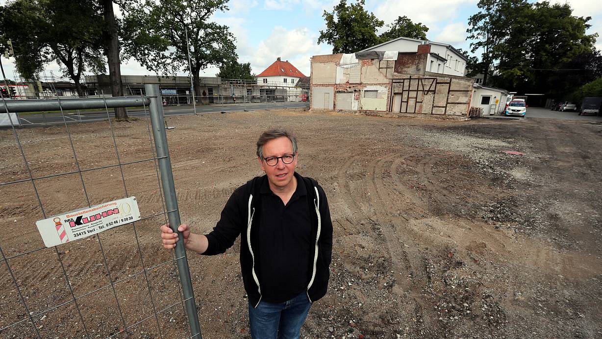 Auf dem leeren Baufeld wird der Drogeriemarkt errichtet. | © Wolfgang Rudolf