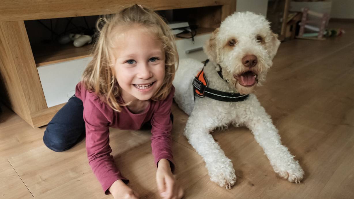 Madeline und ihr Hund Nellie sind beste Freunde. Der portugiesische Wasserhund ist wird zum Diabetikerwarnhund ausgebildet, der bereits jetzt anzeigt, wenn bei der Vierjährigen, die Diabetes Typ I hat, Unterzuckerung droht.  | © Susanne Lahr