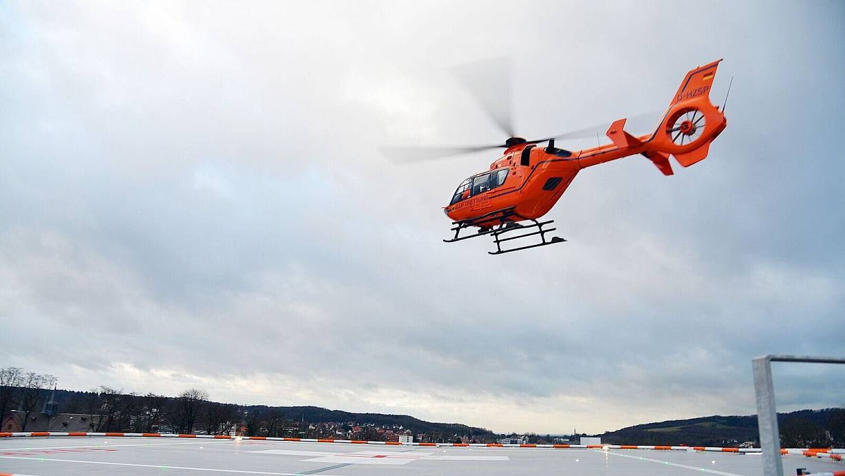 Christoph 13 landet auf einem Hubschrauberlandeplatz, um einen schwerstverletzten Patienten möglichst schnell in ärztliche Behandlung übergeben zu können. | © Symbolfoto: Bethel