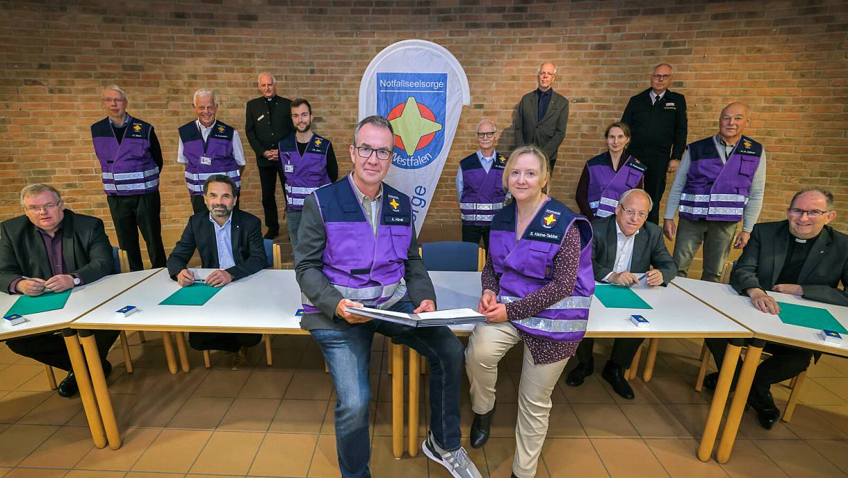 Andreas Hövel und seine Stellvertreterin Sonja Kleine-Tebbe (vorne) leiten die Bielefelder Notfallseelsorge. | © Sarah Jonek Fotografie