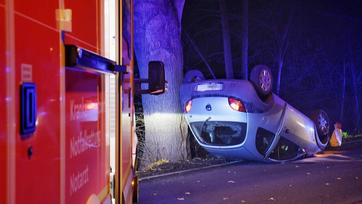 Die 24-Jährige kommt am Samstagmorgen von der Oldentruper Straße ab und landet mit ihrem Ford Ka auf dem Dach.