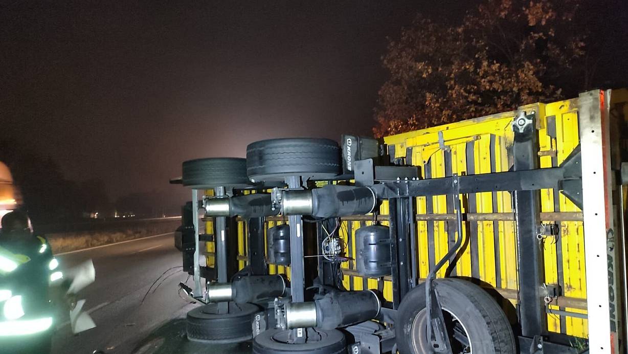 Der Anhänger des DHL-Gespanns liegt auf dem Seitenstreifen der A2. | © NW