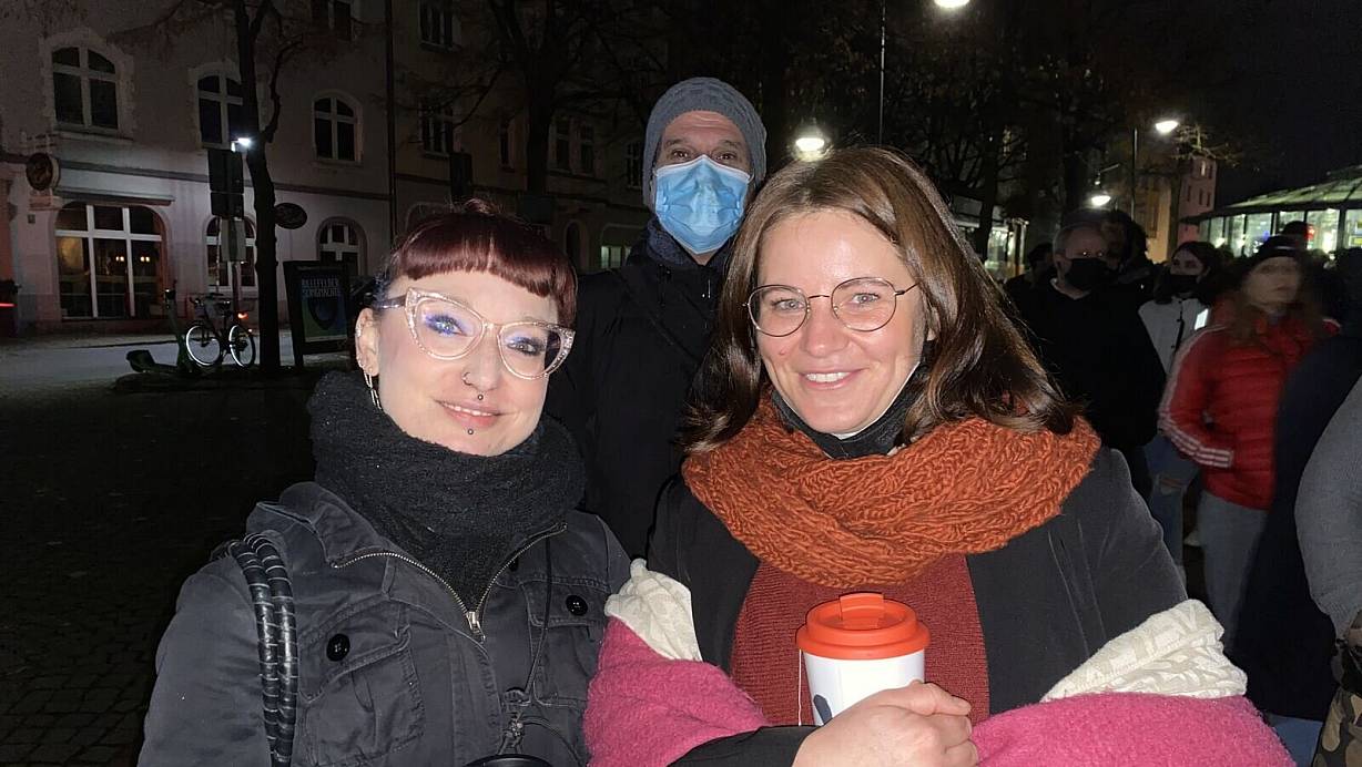 Impfheldinnen: Laura und Caroline harrten fünf Stunden auf dem Siggi aus. In den Bechern ist übrigens nur Tee. | © Heimo Stefula