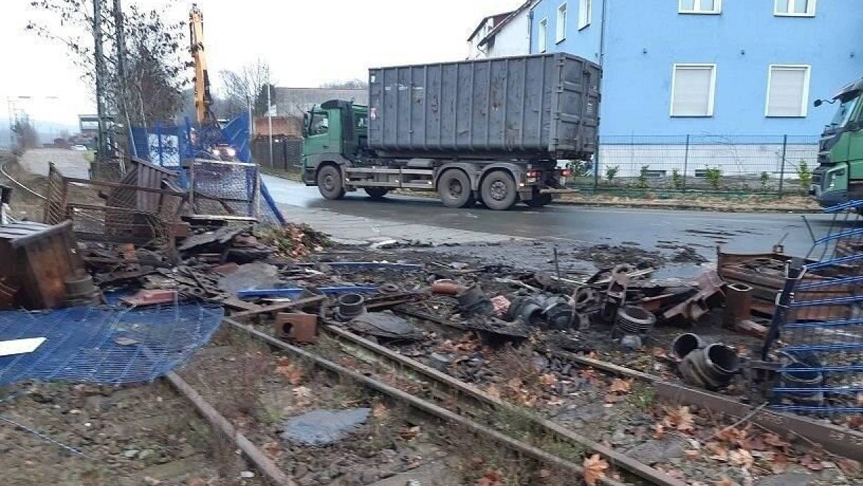 Personenzug kollidiert mit Schrott: Ladung kippt vom Lastwagen