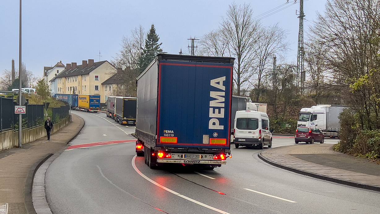 Lastwagen-Schlangen blockieren regelmäßig Straßen im Bielefelder Süden