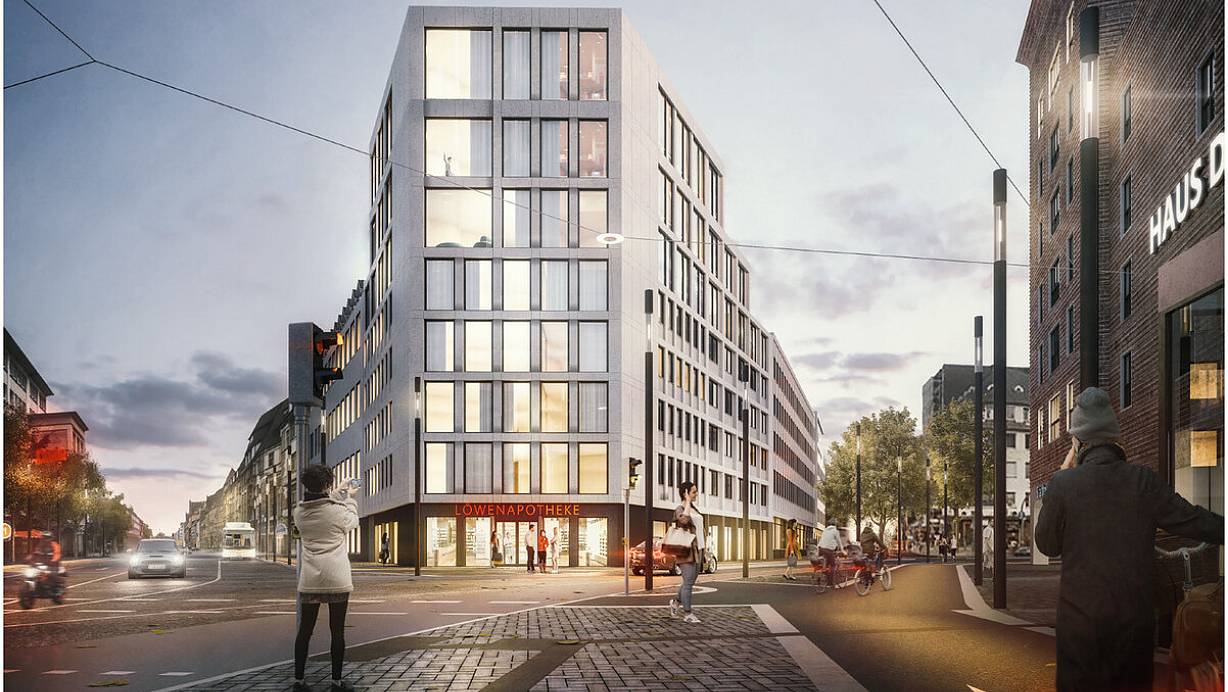Ein markantes Gebäude aus den 1950er Jahren wird aufgestockt. Es entstehen neue Wohnungen mit Blick auf die City.