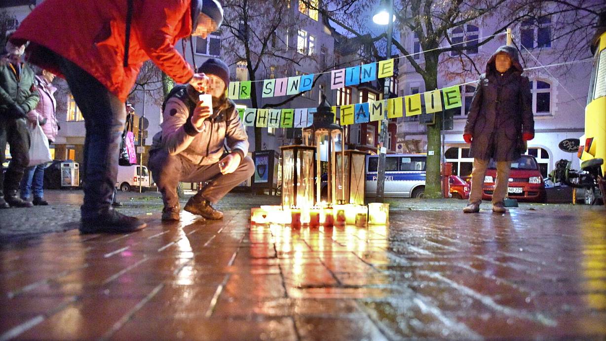 Brücken bauen - wir sind eine Menschheitsfamilie: Unter dem Motto setzen Bielefelder ein Zeichen gegen die Sprachlosigkeit zwischen Menschen mit und ohne Impfung auf dem Siggi. | © Barbara Franke