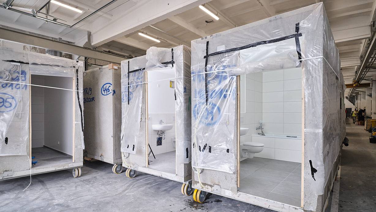 In Serie produziert: In einem Goldbeck-Werk in Polen werden komplette Bäder gefertigt. Bis zu drei Zellen passen auf einen Lkw. | © Goldbeck