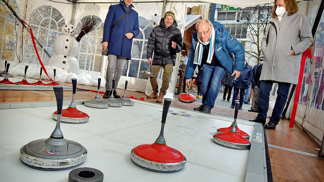 Eisstockschießen startet - aber ohne Eis. Die sogenannte „pömpel.challenge“ sorgt für winterlichen Spaß, wirbt für eine Innenstadt mit weniger Autos und kürt eine "echte Bielefelder Sportart".