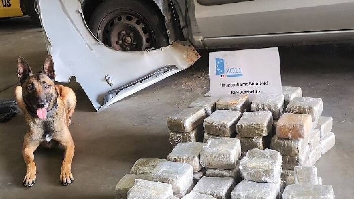 Der Zoll entdeckt mit Hilfe seiner Spürhündin gut 4,5 Kilo Amphetamin im Motorraum eines bei Bielefeld durchreisenden Wagens.