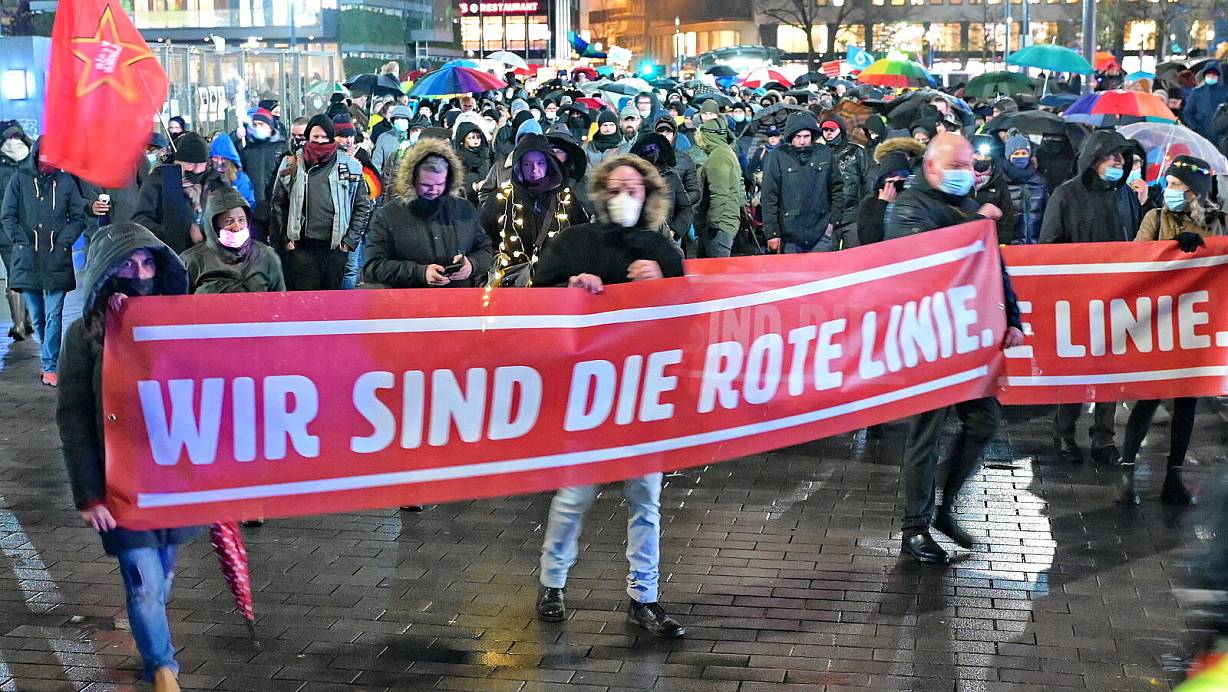 2.500 Gegner der Corona-Politik zeigen wieder in Bielefeld Präsenz. Als es um die Maskenpflicht geht, eskaliert die Situation - ein Polizist wird sogar verletzt.