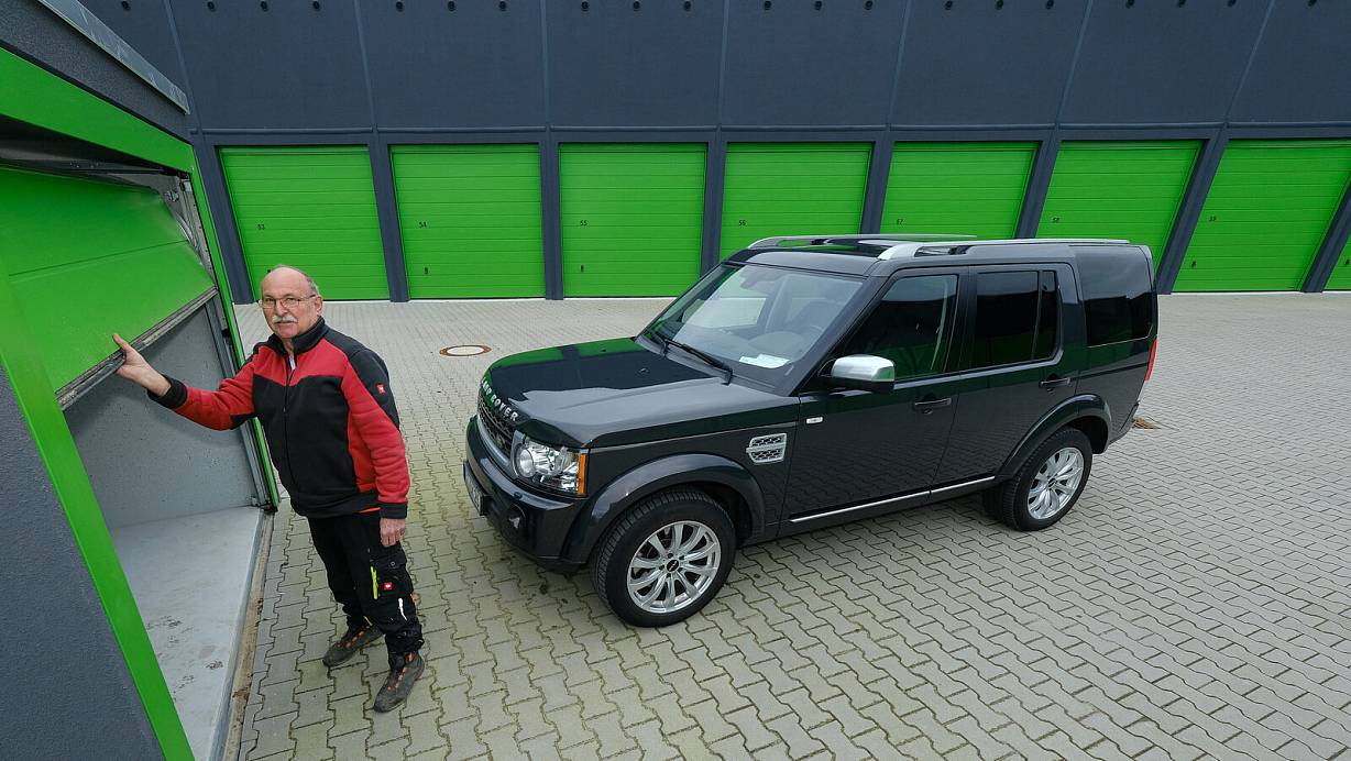 Hans Overbeck öffnet eine der Garagen, die bei Boxit in Senne ab 12 Quadratmetern anfangen. | © Foto: Andreas Zobe/NW