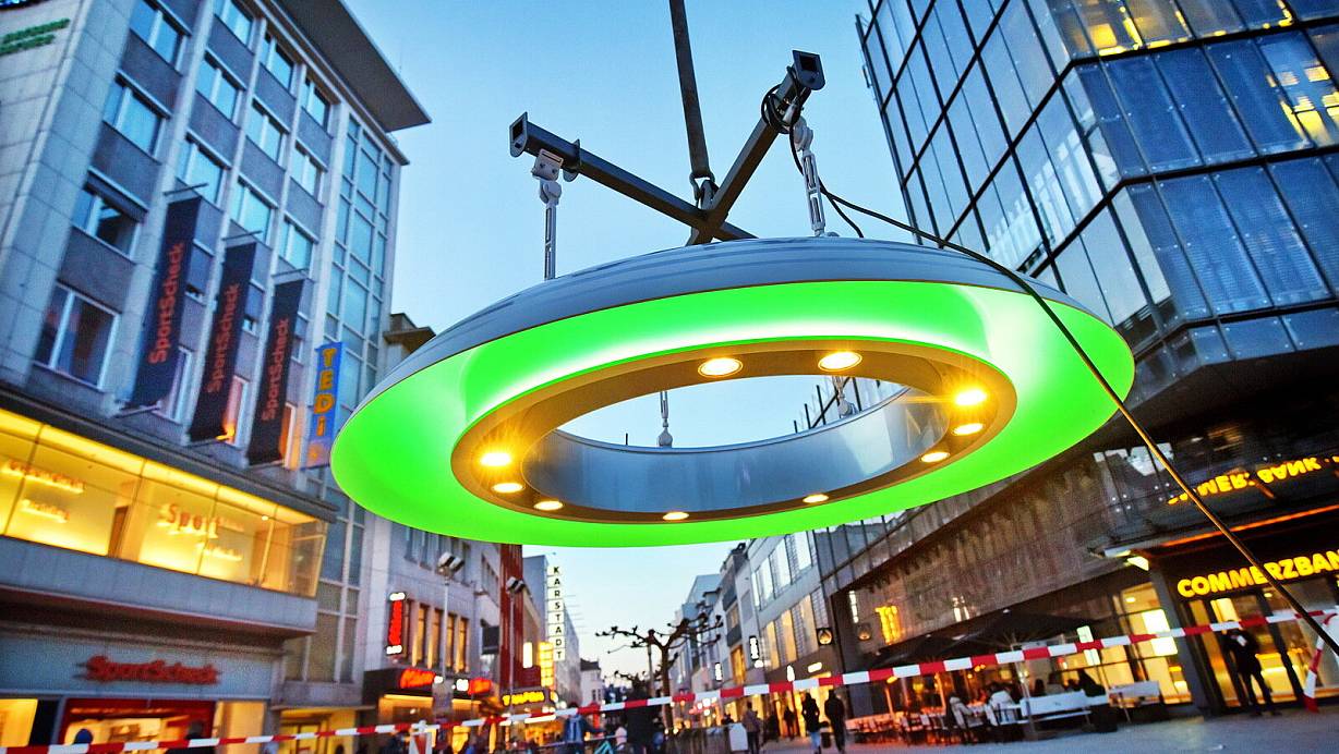 Bielefelds exklusive Lightshow: leuchtende Ufos über dem Jahnplatz