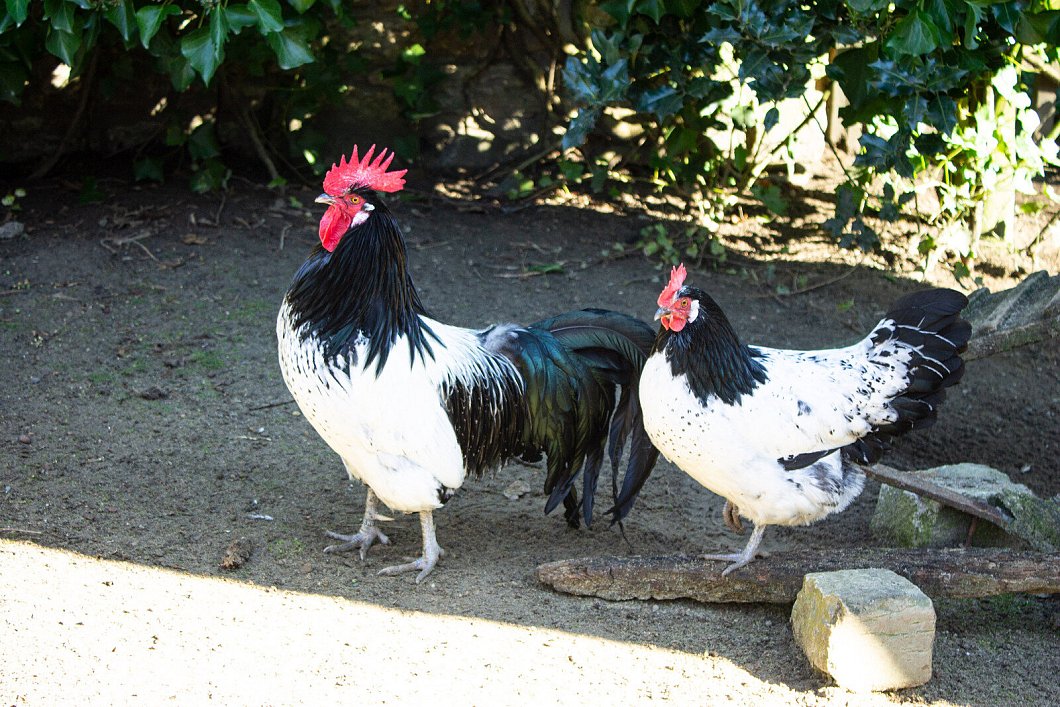 Durch viel Bemühen der Züchter auch in Bielefeld gibt es inzwischen immer mehr Tiere dieser einheimischen Rasse, die vor allem um 1880 in Westfalen und Niedersachsen als Nutztier weit verbreitet war. Die Hühner erkannt man gut an ihrem markanten Aussehen: Kopf und Schwanz sind bei den Tieren schwarz, der Grundfarbe ist weiß. Im Schnitt legt eine Henne dieser Rasse 170 Eier im Jahr. .