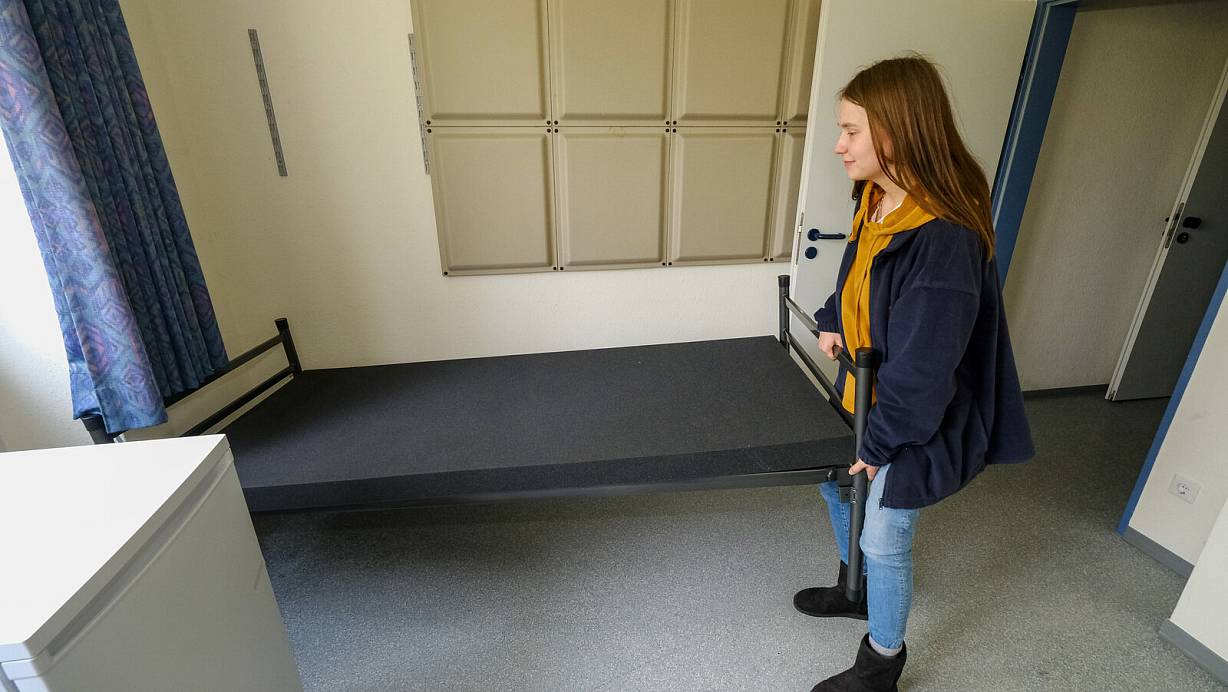 Johanniter-Mitarbeiterin Ellis Chochlow richtet die Zimmer für die Flüchtlinge im ehemaligen Handwerker Bildungszentrum ein. | © Andreas Zobe