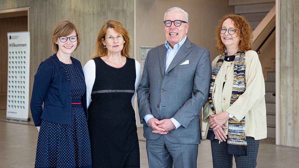 Dekanin Anja Bittner, Professorin Claudia Hornberg, Bundesärztepräsident Klaus Reinhardt und Professorin Christiane Muth (v.l.). | © Mike-Dennis Müller / www.mdm.photo