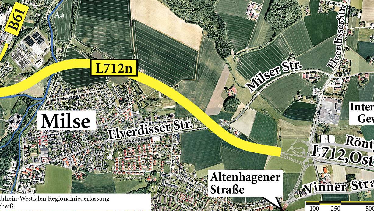 So soll der Lückenschluss der Ostwestaflenstraße (L712n) zwischen Altenhagen udn Brake verlaufen. Für den Kreuzungsbereich mit der Herforder Straße benötigt das Land als Bauherr Flächen von der Stadt. | © df