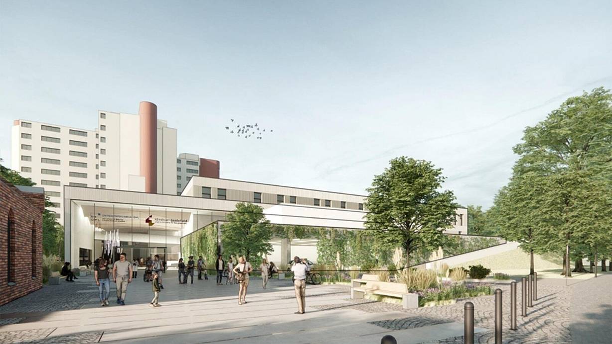 So sieht der künftige Eingangsbereich des Klinikums Mitte an der Teutoburger Straße aus. | © Klinikum MItte