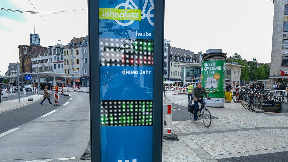 Auf dem Jahnplatz ist in Höhe von Dean & David jetzt eine Radzählstelle installiert worden. Sie gibt künftig Auskunft darüber, wie viel Radler den Platz passieren. Noch läuft ein Testbetrieb. Foto: Andreas Zobe | © Andreas Zobe