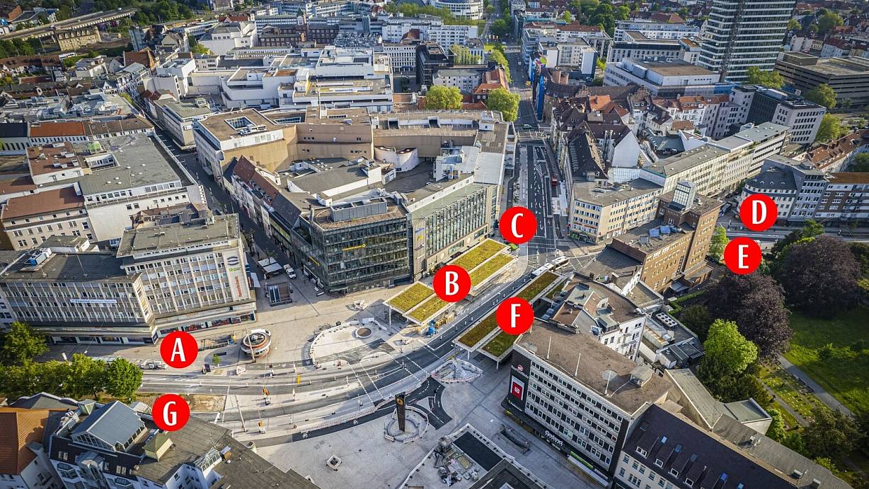 Jahnplatz-Bushaltestellen in Bielefeld ab Montag an endgültigen Positionen