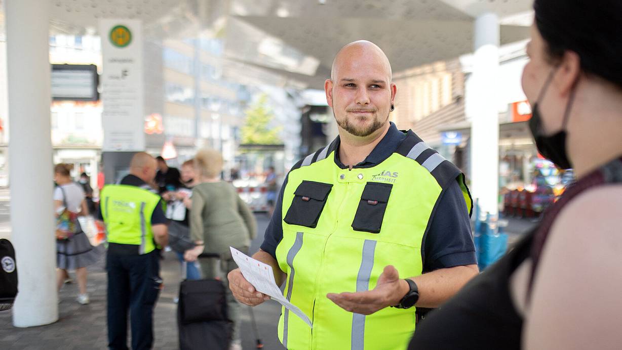 Die Servicemitarbeiter erklären den teils verzweifelten Fahrgästen den richtigen Steig für ihren Bus zu erklären. | © Oliver Krato