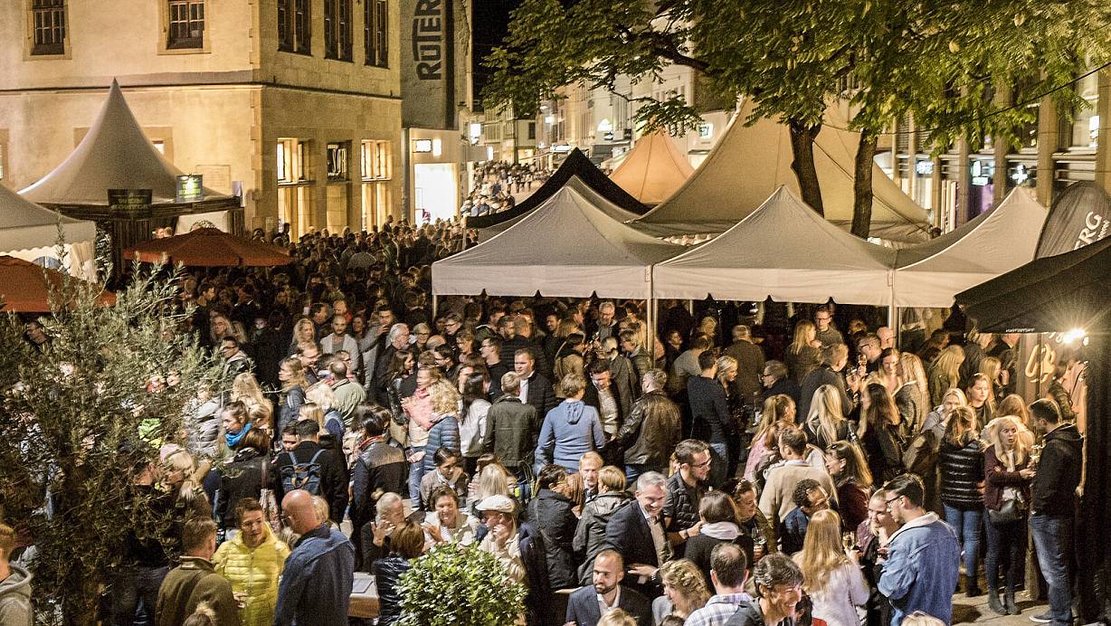 Rund um den Alten Markt präsentieren dann deutsche Weinanbaugebiete ihre Weine. In diesem Jahr seien die Weinregionen Franken, Rheinhessen, Nahe, Mosel und Württemberg dabei, teilt Bielefeld Marketing mit. Auf der Genussmeile vom Alten Markt entlang der Niedernstraße bis zum Altstädter Kirchplatz servieren lokale Weinhändler und Bielefelder Gastronomen ihre Spezialitäten – von Prosecco, Wein und Federweißer bis zu Pasta und Flammkuchen.