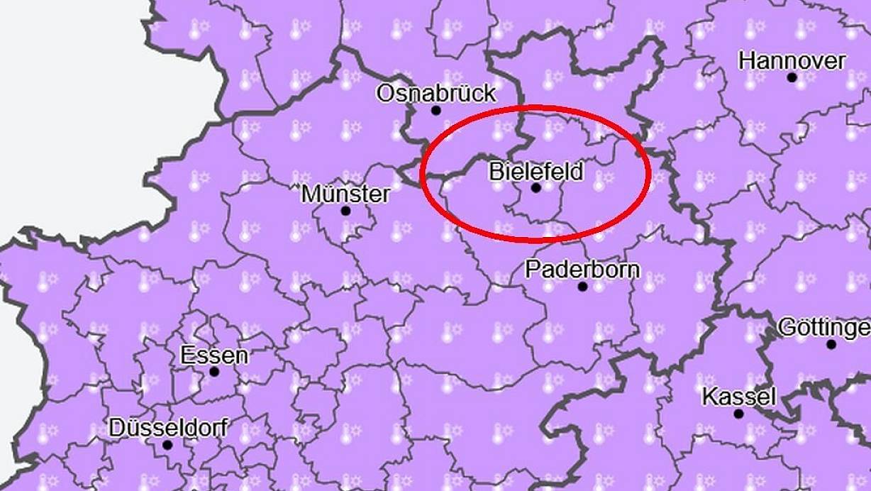 Hitzewarnung für Bielefeld und ganz OWL. | © DWD (Screenshot)