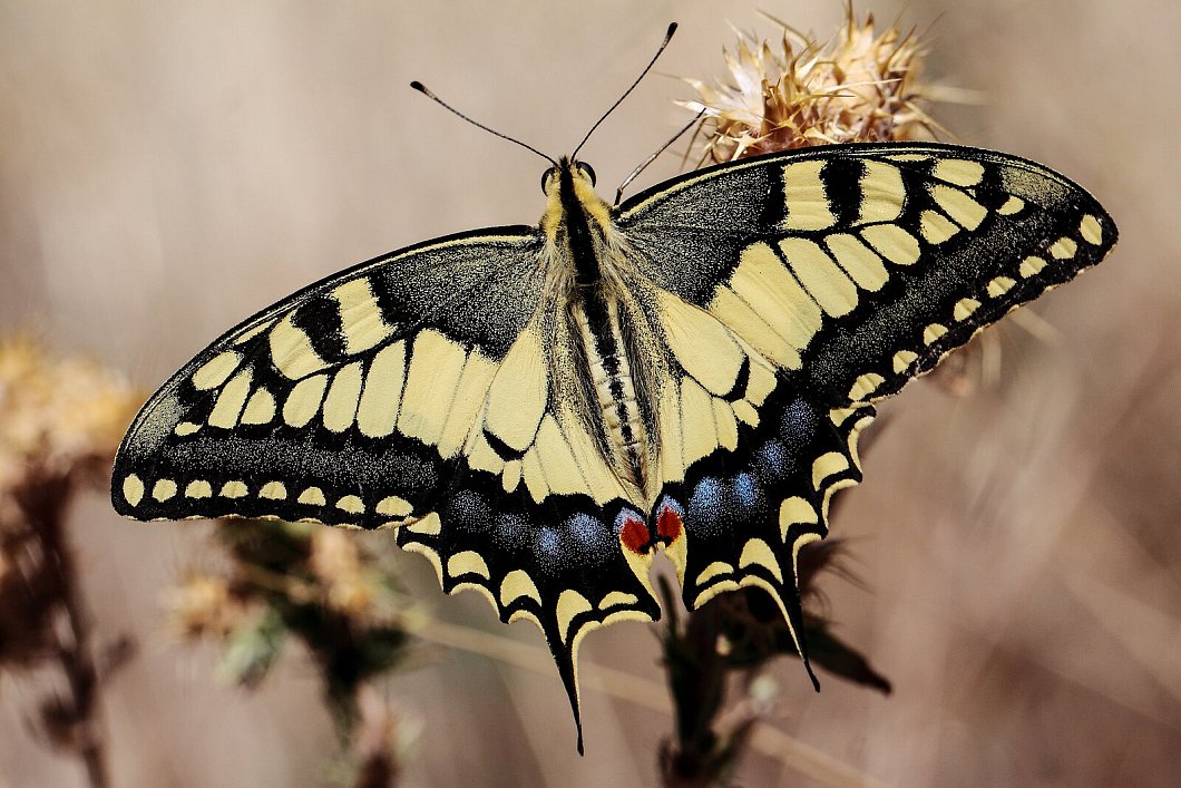 Der massive Einsatz von Agrargiften hat Wildblumen und Insekten dramatisch reduziert. Wo Kommunen oder Gartenbesitzer etwas mehr Wildnis zulassen, gibt es aber auch kleine Erfolge. Hinzu kommt, dass viele Insektenarten vom warmen und trockenen Wetter profitieren. Wärmeliebende Arten wie der Schwalbenschwanz wurden dieses Jahr in Bielefeld häufiger beobachtet. Ihre grün-schwarze Raupe mit hellroten Punkten frisst gern an der Wilden Möhre. Davon gibt es besonders viele in der Johannisbachaue, wo mit etwas Glück die Falter oder Raupen zu entdecken sind.