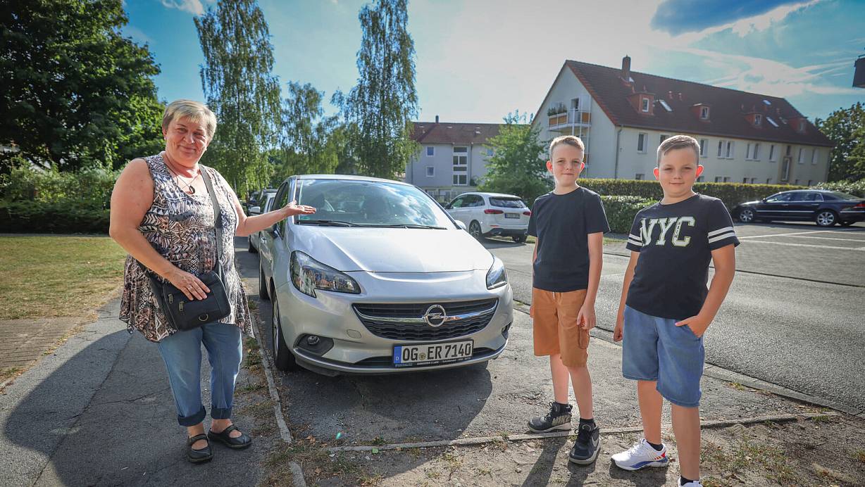 Susanne Baicar (58) und die Brüder Toni (11) und Oliver (9) fanden unabhängig voneinander den Wagen im Neckerweg in Sennestadt. | © Sarah Jonek