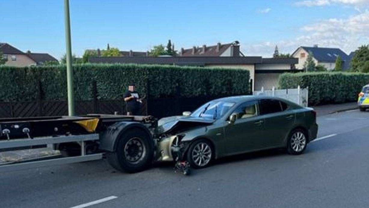 Mit Wucht prallte der Lexus gegen den geparkten Auflieger. Die Anwohner des Heideblümchenweges hatten es vorausgeahnt. | © privat