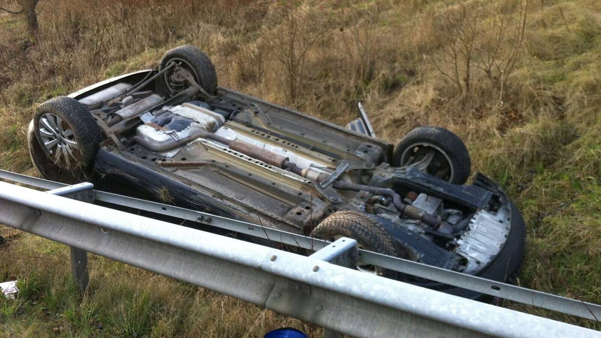 Spektakulärer Unfall: Auto fliegt über die Leitplanke und überschlägt sich