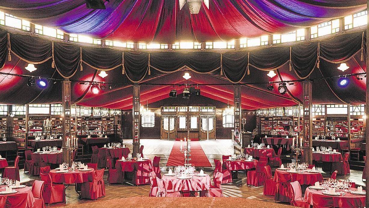 Die Location ist ein nach originalen Bauplänen in Belgien rekonstruiertes Zelt, das für die historische Tradition der Spiegelzelttheater steht. Es ist nach Angaben der Veranstalter in der Region einmalig. "Das ebenfalls historische Ambiente des Ravensberger Parks vervollständigt die Besonderheit des Spiegelzelts in Bielefeld", heißt es in einer Pressemitteilung von Stratmann Event.