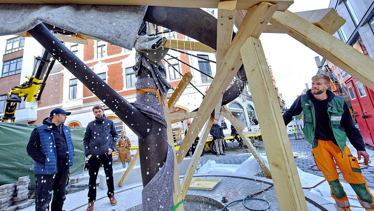 Das Wahrzeichen ist zurück in der Bielefelder Innenstadt. Kostenpunkt: stattliche 450.000 Euro. Schon bald soll das Wasser sprudeln - aber erst nur kurzzeitig.
