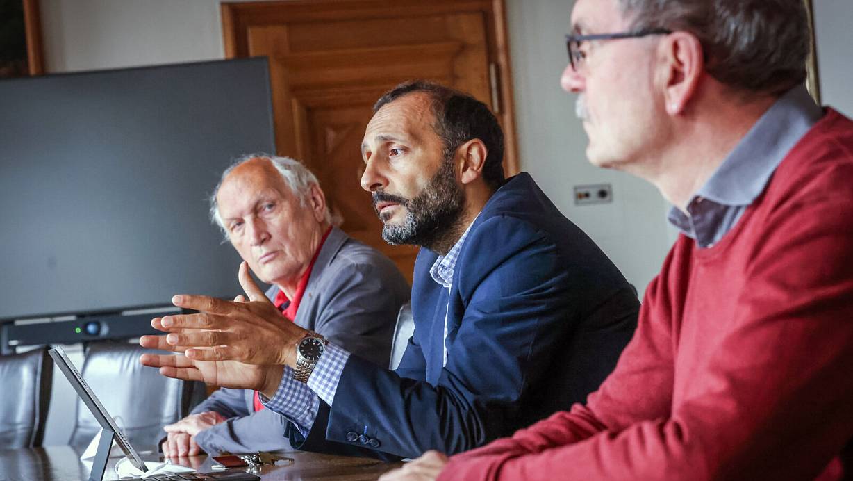 Bernd Vollmer (Linke, v.l.), Riza Öztürk (SPD) und Klaus Rees (Grüne) machen deutlich, dass die Ratskoalition trotz drohender Haushaltlöcher weiter in die Bielefelder Infrastruktur investieren wird. | © Sarah Jonek