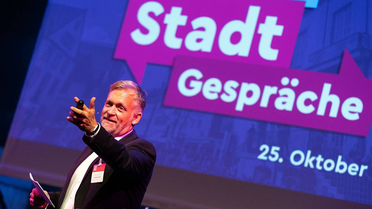 Impulsgeber Thorsten Kausch, Geschäftsführender Gesellschafter der "Stadtmanufaktur GmbH" in Hamburg hält einen Vortrag über "Die Stadt als Bühne". | © Oliver Krato