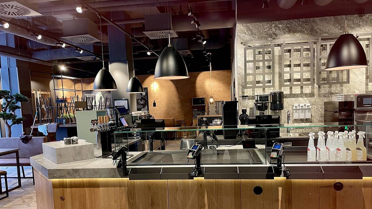Noch sind die Stühle hochgestellt, aber das Interieur ist bereits fertig. Ende November öffnet eine neues Gastro-Angebot im Loom, das es in Deutschland noch nicht so häufig gibt. | © Peter Unger