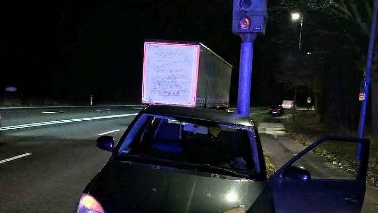 Auto schleudert nach Kollision mit Lkw gegen Bielefelder Blitzer