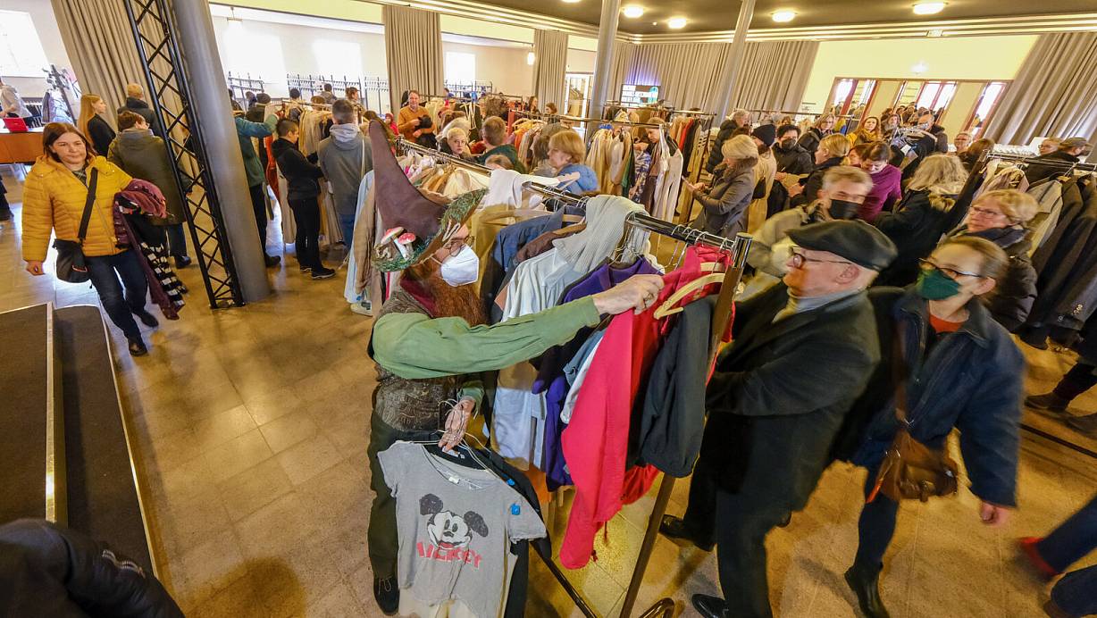 Das Theater Bielefeld mistete seinen Kleiderfundus aus und bot ihn im Foyer der Oetkerhalle an. Und schon Sekunden nach der Öffnung heißt es: Wegen Überfüllung geschlossen.