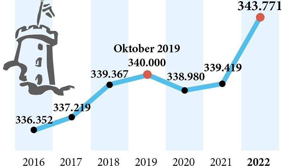 Einwohnerentwicklung in Bielefeld 2016 bis 2022. | © Grafik: Jürgen Schultheiß